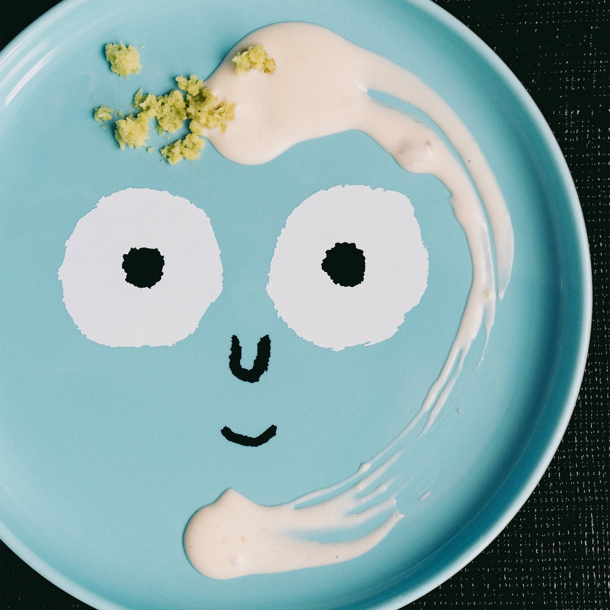 Family Plate Small - Mint Blue a mint blue ceramic plate with a signature smiling face that adds joy to any table.
